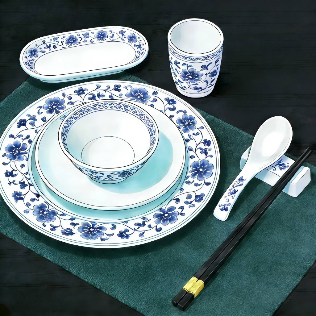 Apabila bercakap tentang peralatan makan, peralatan Cina yang biasa termasuk cawan, pinggan, mangkuk, pinggan mangkuk, penyepit dan sudu, semuanya biasanya disusun di hadapan setiap restoran. Di antara konvensyen, "menoreh penyepit pada mangkuk" adalah pantang larang yang ketara. Ini berpunca daripada amalan pengemis zaman dahulu yang akan mengetuk mangkuk mereka untuk menarik perhatian sambil mengemis, menjadikan perbuatan itu dianggap tidak sopan di meja makan.